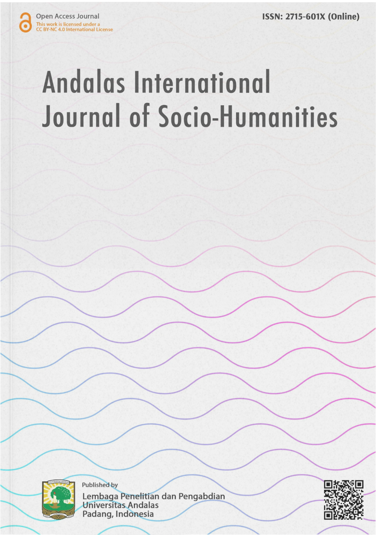 The Andalas International Journal of Socio-Humanities (AIJOSH) is a distinguished peer-reviewed academic journal committed to advancing the understanding of socio-humanities perspectives, with a unique focus on the complexities and dynamics of marginalized groups. Published biannually by the Lembaga Penelitian dan Pengabdian Masyarakat (LPPM) Universitas Andalas, AIJOSH provides a dynamic platform for interdisciplinary and comparative scholarship that explores the intersections of society, culture, and humanity.